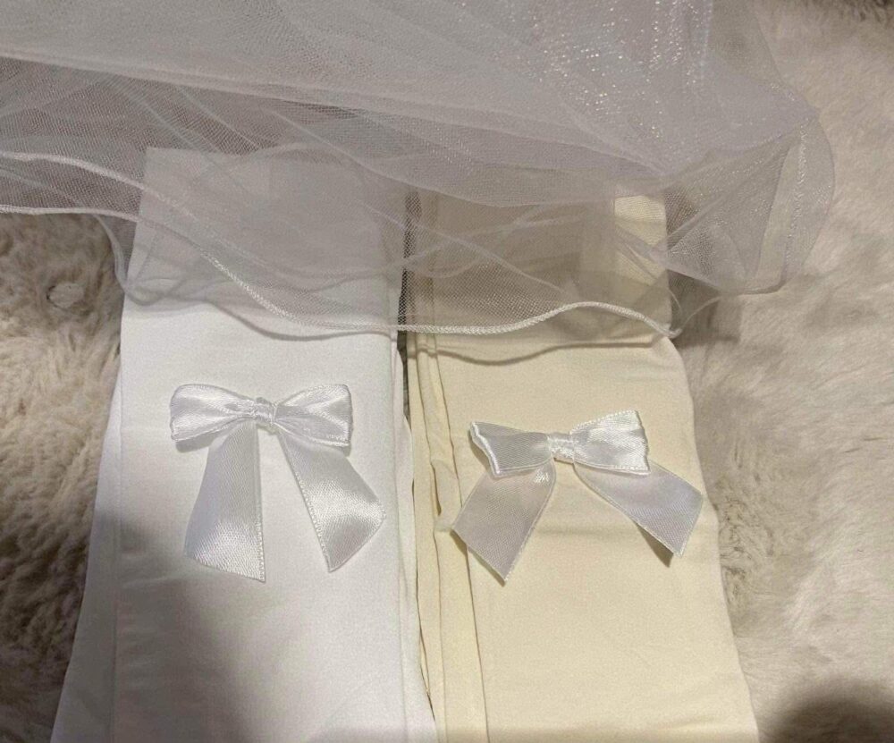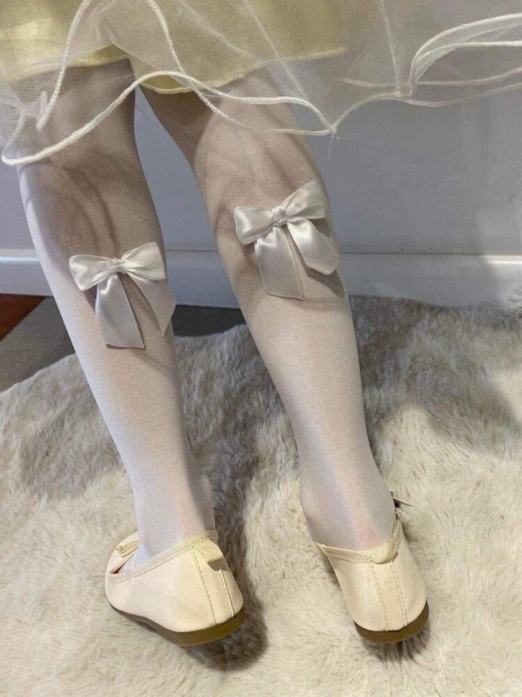 Rajstopy ozdobione kokardkami satyna
