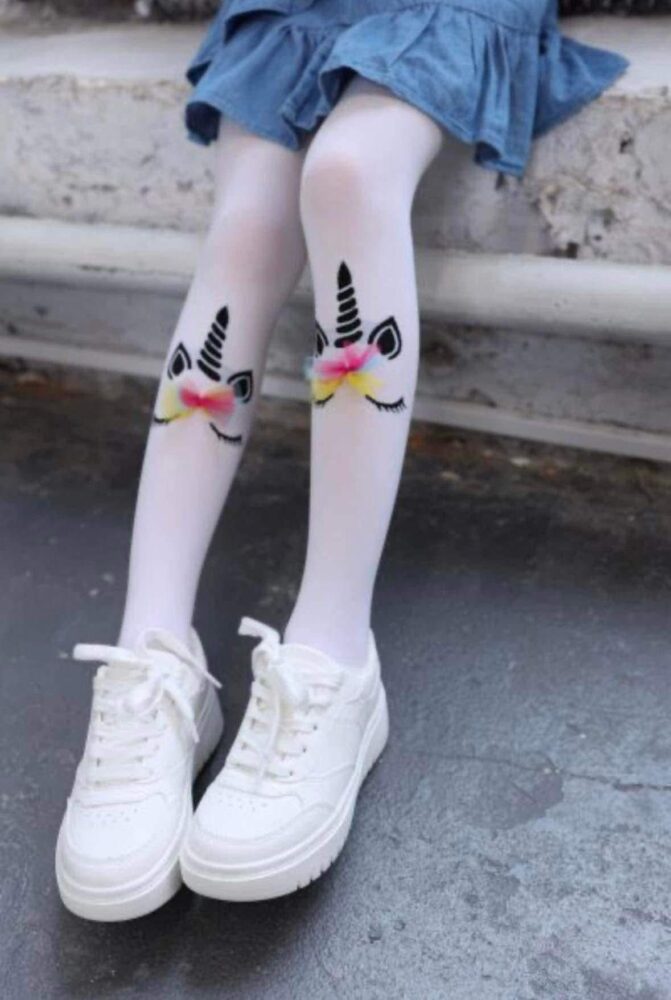 Kryjące, rajstopy multimicrofibra 3D ozdobione wzorem jednorożca. Posiadają: